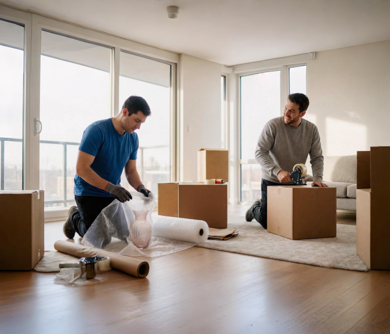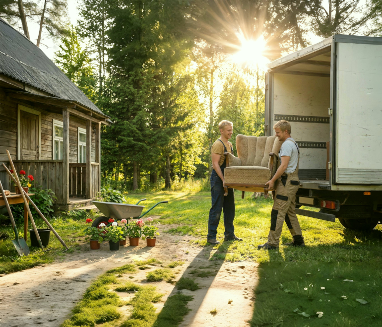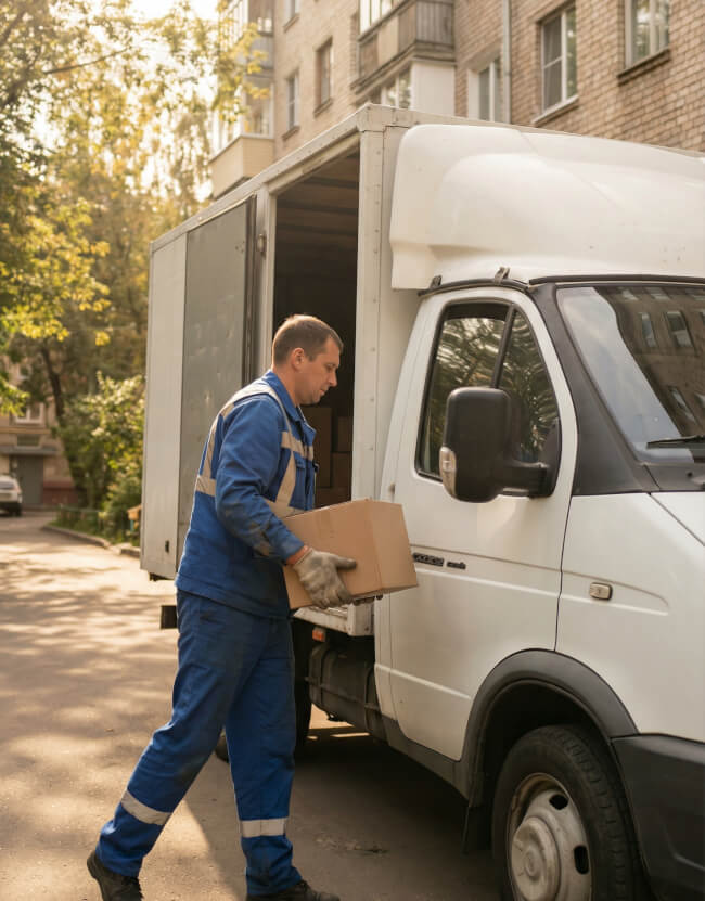 В назначенное время машина (и грузчики) прибывают по адресу. Вы контролируете погрузку и сопровождаете груз (или доверяете это нам)